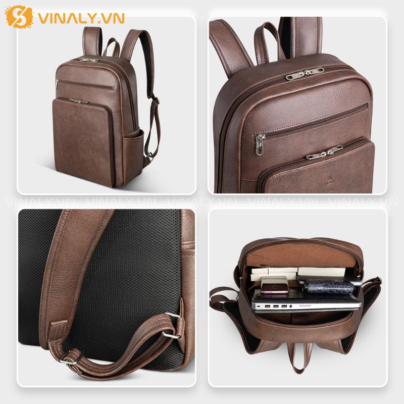 Form dáng gọn gàng, tinh tế với chất liệu da cao cấp bền bỉ, chống trầy nhẹ giúp giữ dáng balo luôn sang trọng. Ngăn laptop cùng các ngăn phụ được bố trí khoa học, dễ sắp xếp tài liệu và đồ dùng cá nhân khi di chuyển. Phù hợp đi làm, gặp khách hàng hoặc mang theo trong những chuyến công tác nhẹ nhàng.