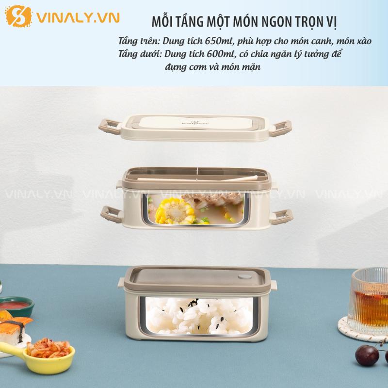 HCGN-09 | HỘP CƠM GIỮ NHIỆT KALPEN 2 TẦNG INOX 304 GIỮ NHIỆT KHOA HỌC 1900ML giúp phân chia món ăn hợp lý và duy trì nhiệt độ ổn định.