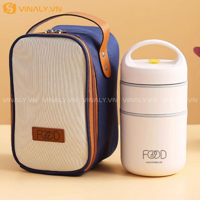 HCGN-11-01 | HỘP CƠM GIỮ NHIỆT ĐẸP INOX CẦM TAY MÀU BE KÈM TÚI GIỮ NHIỆT CHO NGƯỜI BẬN RỘN